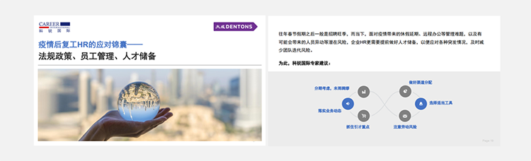 为了帮助众多企业人力资源工作者应对挑战,凯发k8官网国际联合国内知名律所“大成律师事务所”,推出疫情后《复工HR的应对锦囊》手册,从法律政策、员工管理、人选储备几个方面对企业HR有序召开复工后的各项人力资源管理给予帮助。手册下载